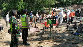 Sebelumnya Personil Polsek Sampung melakukan pengecekan lokasi pemakaman. Selain itu anggota Polsek Sampung juga memberikan himbauan kepada warga sekitar yang ikut menyaksikan pemakaman untuk mematuhi protokol kesehatan dengan memakai masker dan menjaga jarak agar tidak terjadi kerumuman.